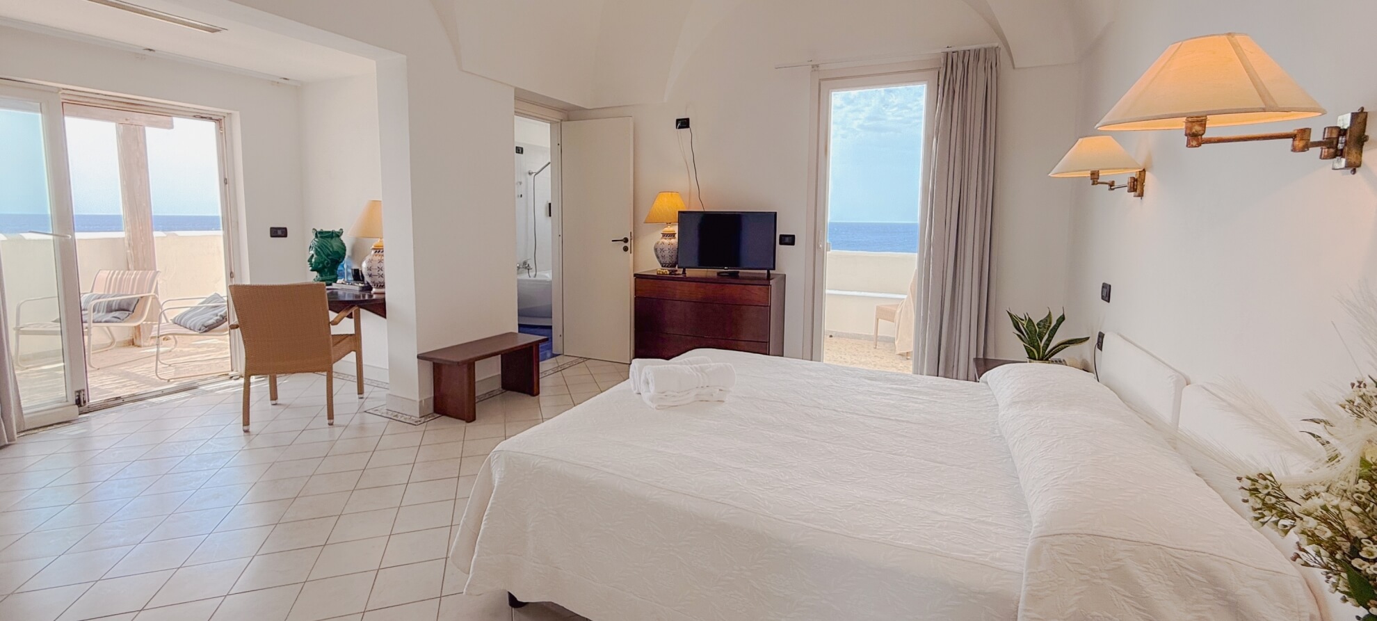Toujours caractérisées par cette atmosphère méditerranéenne qui enivre chaque recoin de l'Hôtel Mursia, nos suites se distinguent par leurs grandes dimensions et leurs terrasses privées exclusives avec vue sur la mer.